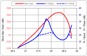 Above the Gain / Front to Back and Front to rear response versus frequency.