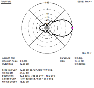 The freespace azimuth plot at 28,4 MHz 12,66 dBi