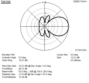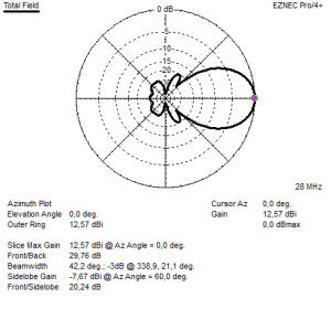 The freespace azimuth plot at 28,0 MHz 12,57dBi