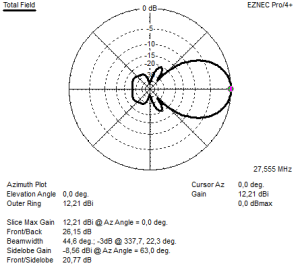 The freespace azimuth plot @ 27,555 12,21 dBI gain.