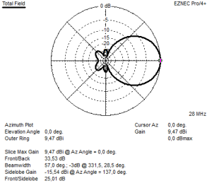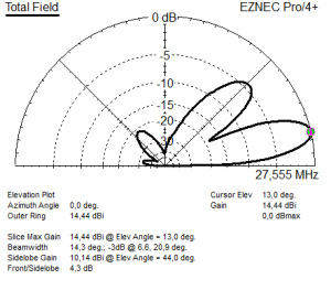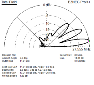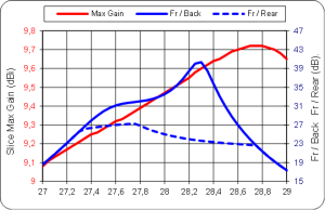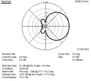 Gain:         9,30 dBI (@27,555 MHz, Peak gain: 9,67dBI @28,5MHz)